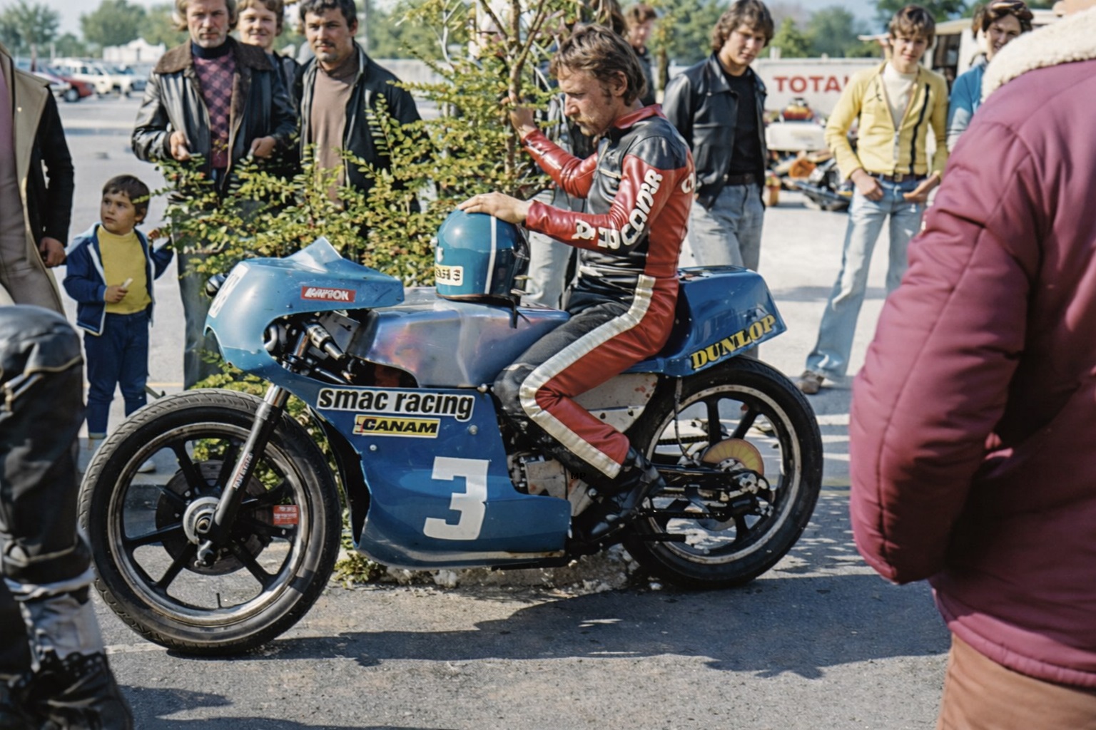 350 Motobécane Course, présentée en 1974 au Paul Ricard (pilote Éric Offenstadt) M. Légende